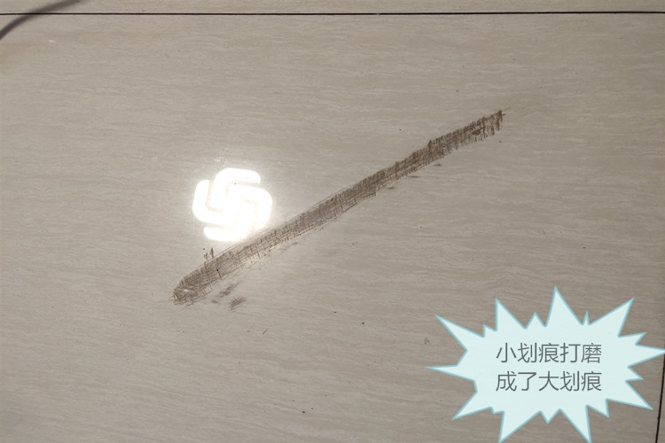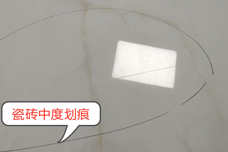 第二、中度劃痕:燈光下陽光下一眼就能看出來,因?yàn)閯澓鄣牡胤經(jīng)]有反光,用指甲滑動明顯有阻礙。修復(fù)流程:先用專業(yè)的磨片把劃痕處銳利的周邊磨平滑,然后涂上免燒釉修復(fù)劑,配合手持拋光機(jī)進(jìn)行柔拋,每一次2分鐘左右,在拋光過程中會產(chǎn)生熱量,熱量與修復(fù)劑反應(yīng)形成釉面,每涂一次,拋一次,就會形成一層釉面,一般三遍左右,就能完全修復(fù),把劃痕凹陷處填平了,由于是高溫形成的釉面,所以劃痕處的釉層能夠與磚面牢固結(jié)合,耐水擦洗,超高亮度,堅(jiān)硬耐磨,你自己都很難發(fā)現(xiàn)原來的劃痕在哪里。這樣的效果您滿意嗎?